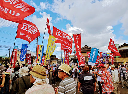 集会後高浜町内をデモ、実行委員会の皆さんが日ごろから町内にビラを配布してきたことが功を奏し、行先々で家から出てきて手を振る方がいて心強くしました。